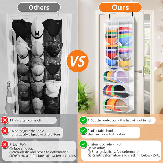 Toread Dual Purpose Over The Door Hat Organizer,Holds 80+ baseball caps Baseball Hat Organizer,Adjustable-hook design Hat Rack For Door,Fits closet/bedroom/pantry Over Door organizer-W