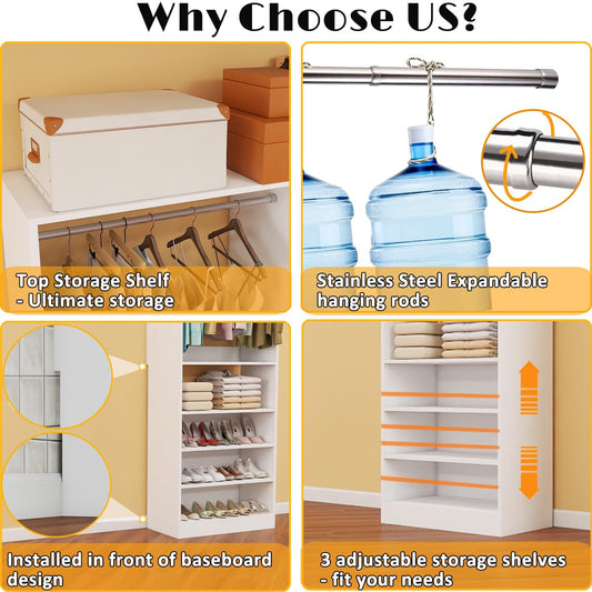 Closet Organizer Systems with 5 Hanging Rods & Adjustable Shelves Walk in Storage Closet Free Standing Closet System Corner Closet System 2 Set, White