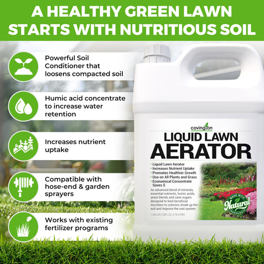 Covington Liquid Lawn Aerator (32oz) – Soil Conditioner & Softener for Lawns & Gardens – Loosens Clay & Compacted Soil for Better Water & Nutrient Absorption – Liquid Aeration Concentrate, Made in USA