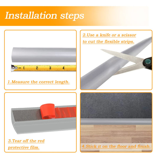 Floor Rubber Transition Strip Self Adhesive Carpet to Tile Transition Strip Edging Trim Strip for Threshold Transitions with a Height Less Than 5 mm/0.2in (Grey, 6.56FT)