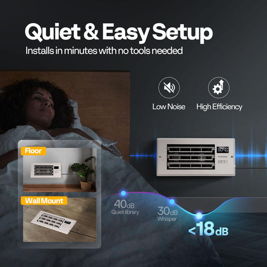 VIVOHOME 4'' x 10'' Opening Register Booster Fan with Adjustable Wind Direction Louver, Smart Intelligent Thermostat & 10-Speed Remote Control - 11.4" x 5.5" Vent Cover for Room, Floor, Wall - White