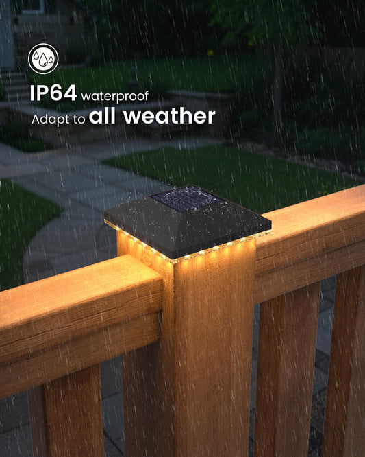VOLISUN 4x4 Solar Fence - Post Lights Outdoor Waterproof 8pack, Deck Cap Light for 4x4 Wooden/4x4 Vinyl,Black Solar Fence Post Cap Light for Garden/Patio/Porch