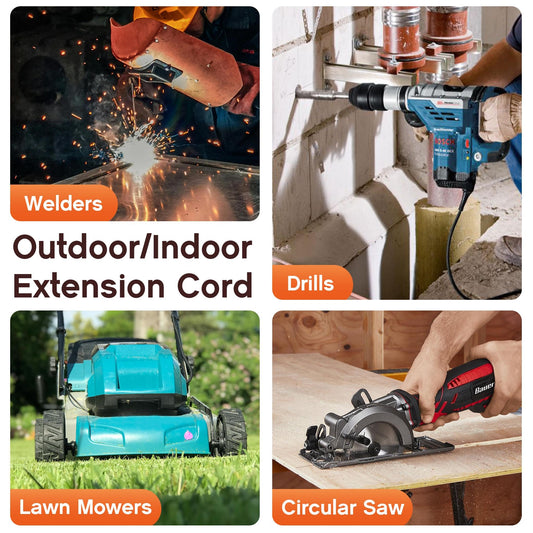 12/3 25 FT Heavy Duty Outdoor Extension Cord Waterproof with Lighted End,Black 12 Gauge Extension Cord Flexible and Cold Resistant 3 Prong Grounded Plug,15Amp 1875W SJTW ETL Listed