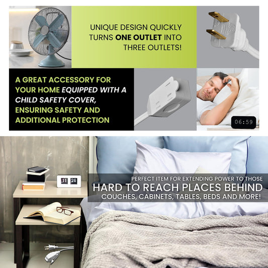 Go Green Power Inc. 20ft Household Extension Cord, White, 3 Outlets, 16/2, Indoor Use Only - Safe, Reliable, and Child-Safe Covers - Ideal for Everyday Electronics