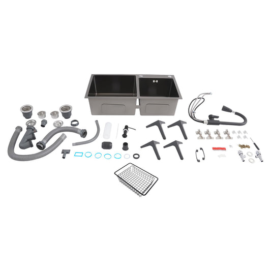 sjcdicnj All-in-One Utility Sink & Cabinet, 31-inch Freestanding Kitchen Sink Cabinet Stainless Steel Laundry Cabinet with 360° Faucet for Laundry Room, Garage, Mudroom (Black)