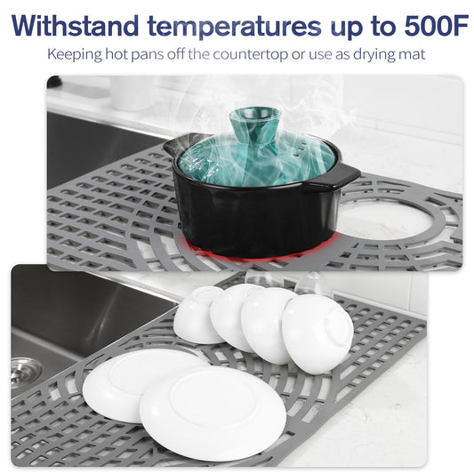 Snuggery Silicone Sink Protector 28"x15" Rear Drain Hole, Heat Resistant Non-slip Dishwasher Suitable, Large Mat for Bottom of Farmhouse Kitchen Stainless Steel Sink(Grey)