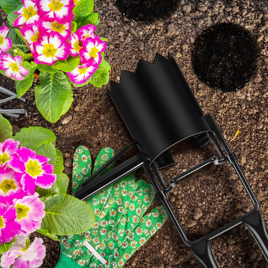 Bulb Planter Tool Long Handle,Upgraded Serrated Base Gardening Bulb Transplanter with Soft Grip,Heavy Duty Double Long Handled Bulb Planter Sod Plugger for Digging Holes to Plant Tulips,Iris,Daffodils