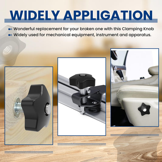 ZIUZI 5/16-18 Thread Knob Nut, 6 Pack 5/16 Star Shape Hand Tighten Clamping Knobs Black Screw-On Nuts