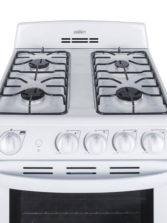 Summit 20” Gas Range, 4 Burners, Full 2.3 cu.ft Oven - (ADA Compliant) - RG200WS