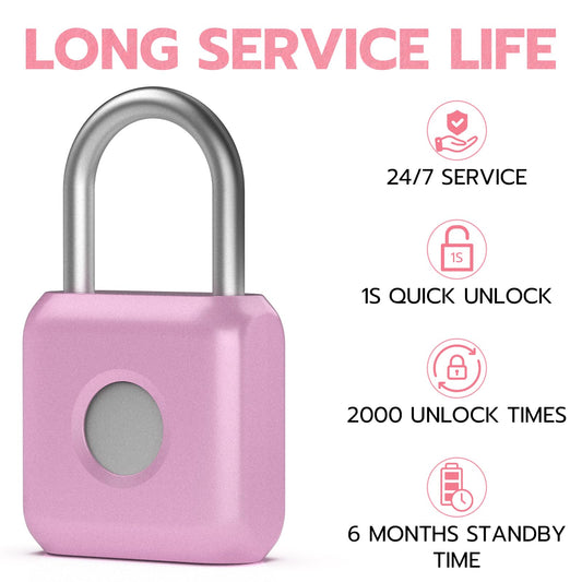 Fingerprint Padlock eLinkSmart Gym Locker Lock for Girls Women with Phone App iOS Watch Metal Keyless Combination Locks for School Sports Locker Toolbox Hasp Storage Pink