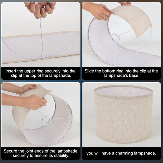 Small Lamp Shade, Beige Drum Lampshade 8.7''Top X 8.7'' Bottom X 7.9'' High, Replacement Lamp Shade Natural Linen Hand Crafted for Table Lamps Floor Lamps Chandelier Lamp, Easy Assembly Required