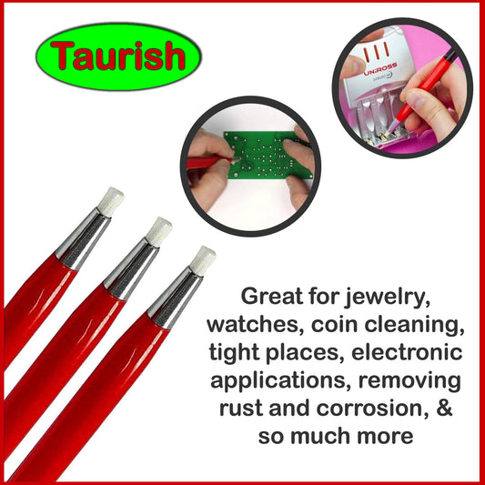 TAURISH Fiberglass Scratch Brush Pen 3 Pack Jewelry Watch Coin Cleaning Electronic Applications Rust and Corrosion Removal