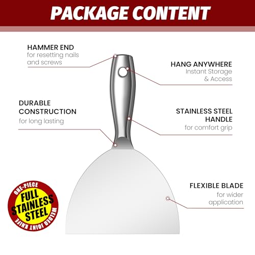Putty Knife 6 Inch,One Piece Premium Polished All-Stainless Steel Scraper Tool for Drywall Finishing,Professional Grade Putty Blade for Scraping Paint, Taping