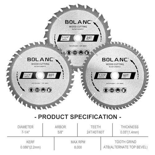 Framing 3-Pack 7-1/4 Inch 24T&40T&60T Wood Cutting Carbide Circular Saw Blade with 5/8 Inch Diamond Knockout Arbor