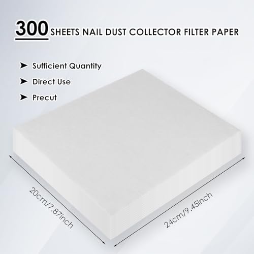 300 Sheets Nail Dust Collector Filter Paper: Disposable Dust Vacuum Filter for Most Nail Dust Fan Extractor Machine, Dust Cleaner Replacement Filter Paper Nail Tech Supplies Accessories for Home Salon