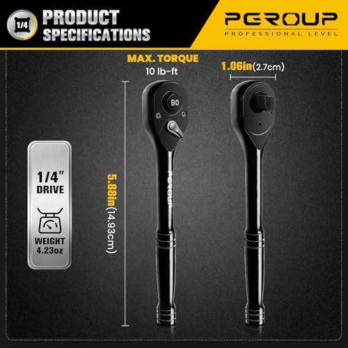1/4-Inch Drive Ratchet Wrench, 90 Tooth Reversible Ratchet, 4-Degree Swing, Ergonomic Handle, Chrome Alloy Made, Quick Release Ratchet Wrench for Repairing, Home, DIY