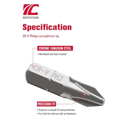 ROTATION 30-Piece Phillips #2 Bit Set PH2, Impact Grade, 1/4-inch Hex Shank, Chrome Vanadium Steel