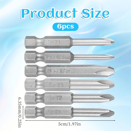 Triwing Screwdriver Bit Set 6 Sizes Y0 Y1 Y2 Y3 Y4 Y5, Y-Type Tri-Wing Drive Screwdriver Insert Bit Set, TriWing Bits Sets 2" Long Shank 1/4 Inch Hex Shank S2 Steel Magnetic 2 Inch Long Drill Bits