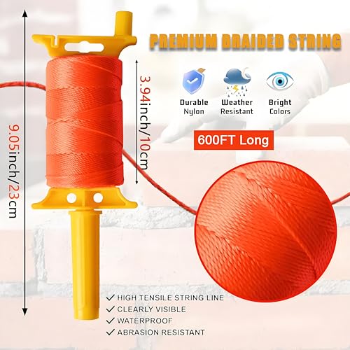 Reloadable Line Reel,Mason Line String line with Handle, 600 Ft Length Nylon Twine,18 Braided Nylon String for Gardening Or Masonry Tools,Outdoor Kite£¬Twine String for Gardening Fluorescent Orange