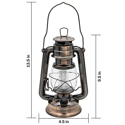 YAKii LED Vintage Lantern Metal Hanging Hurricane 12 LED Dimmer Switch Cold White Battery Operated Power Outage Indoor Camping Lighting Outdoor Brooklyn Decoration(Copper)