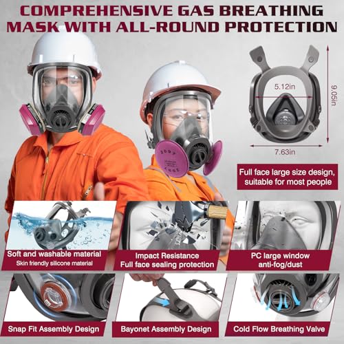 Respirator Gas Mask, Reusable Full and Half Face Gas Masks with Filters against Chemicals Organic Vapors
