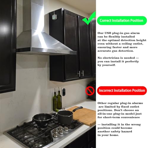 Gas Leak Detector, Natural Gas Detectors, USB Plug-in Propane Gas Alarm, Combustible & Explosive Gas Alarm for RV, Kitchen, Home Safety, Methane, LNG, LPG Monitor, 10-Year Lifespan, White