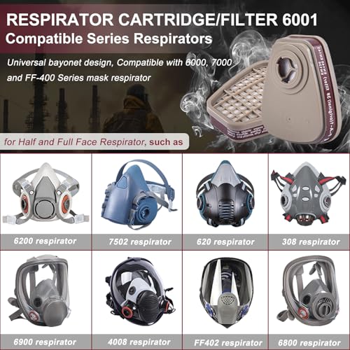 6001 Filter Cartridges for Respirator, Paint, Chemical Gas and Pollen, Organic Vapor Cartridge, Replacement Respirator Filters for 6200, 6502, 7502, 6800, 4008, FF402 Respirator(5 Pair)