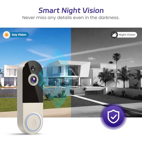 1080p Wireless Video Doorbell Camera with AI Human Detection, 2-Way Audio, Night Vision, Cloud Storage, Real-Time Alerts, 2.4G Wi-Fi Only