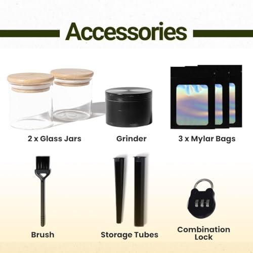 Stash Box Bamboo Storage Box with Combination Lock ? Wooden Organizer Box with Removable Tray, Glass Jars & Accessories, Decorative Lockable Bamboo Box with Lid,Home Kitchen Pantry Stashbox Wood Chest