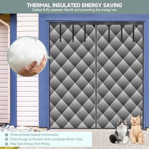 Garage Door Screen for Winter, Sunmoxia 9 * 7Ft Magnetic Thermal Insulated Door Curtain, Upgraded Oxford Cloth Filled with Thicken Polyester Fiberfill, Windproof Insulation Cover Blanket (Grey)