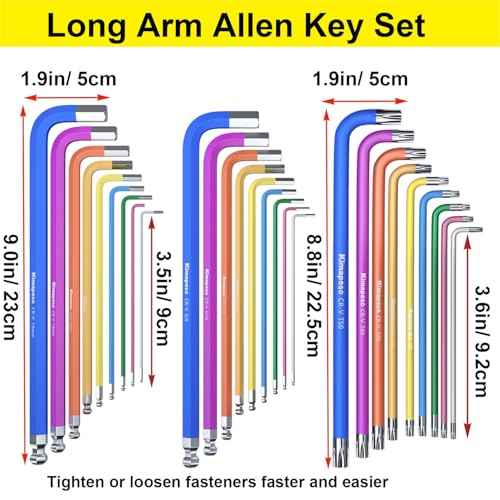 Hex Key Set 27PCS Long Arm Allen Key Set Extra Long Ball End Allen Wrench Set Metric Imperial Torx With T-Handle Metric 1.5mm-10mm, SAE 1/16-3/8, Star Key Set T10-T50