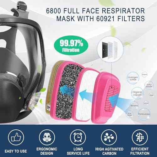 Full Face Respirator Mask 6800-ReusableRespirator Mask with 60921 Filters, ldeal for Painting, Spraying, DustProtection, Chemical Safety, Woodworking,Construction, and DlY Projects
