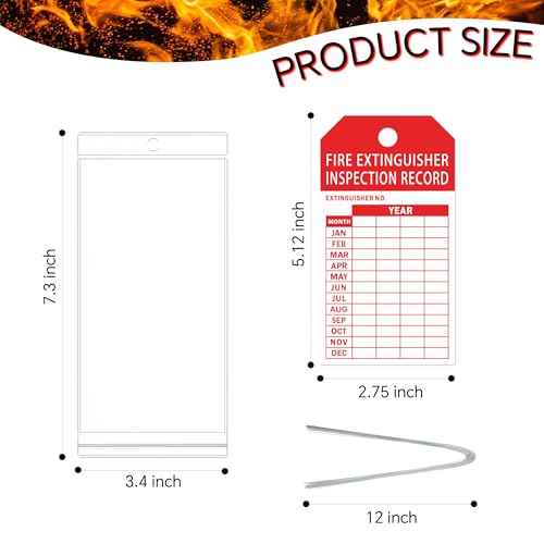 50 Pack Fire Extinguisher Inspection Tag Plastic Cover 3.4 x 7.3 Inch Service Record Tags Fire Extinguisher Tamper Seal with Fire Tags and Iron Wire Resealable Waterproof for Indoor and Outdoor (50)