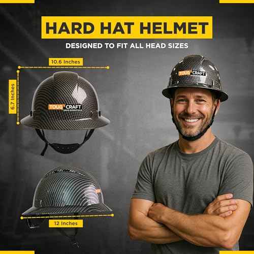 ToughCraft Full Brim Hard Hat for Men - Black Carbon Fiber Hard hat for Construction Work, Safety Helmet with Soft Padded 6 Point Adjustable Ratchet Suspension, Cascos de Construccion, Type I Class C