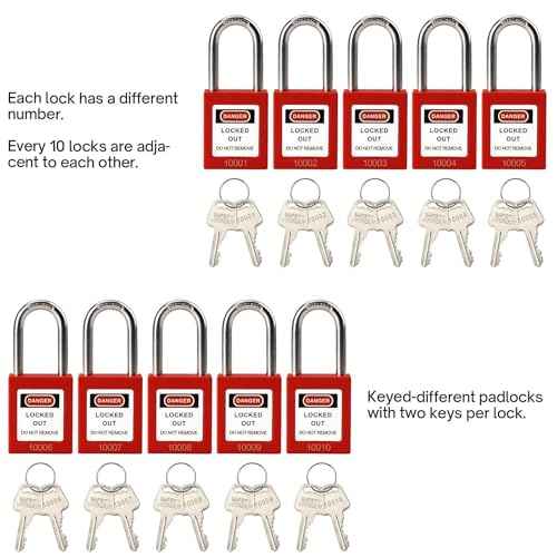 Lockout Tagout Locks Set with Brass Core,10 Red Safety Padlocks Keyed Different,2 Keys Per Lock,OSHA Compliant Loto Locks for Electrical Lock Out Tag Out Kits