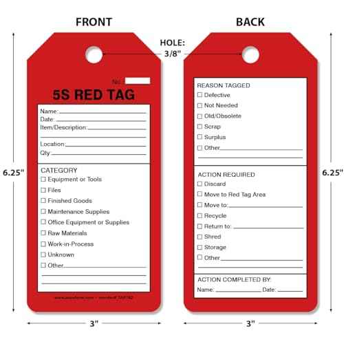 AccuformNMC 100 Tags by-The-Roll, 5S Red Tag, US Made OSHA Compliant Tags, Waterproof PF-Cardstock, Resists Tears, 6.25"x3", TAR162