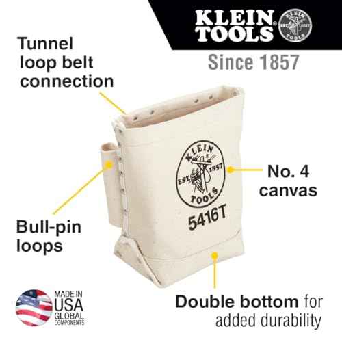 Klein Tools 5416T Tool Bag, Bull-Pin and Bolt Pouch, No. 4 Canvas with Tunnel Connection, 5 x 10 x 9-Inch