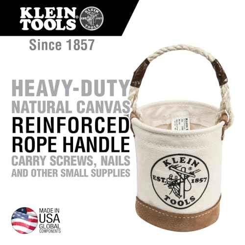 Klein Tools 5104MINI Mini Tool Bucket, All-Purpose Tool Bucket with Leather-Bottom, Nuts and Bolt Bag with Reinforced Rope Handle, Small Utility Pouch