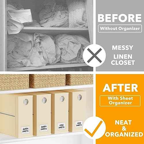 SpaceAid 4 Pack Bed Sheet Organizers and Storage, Foldable Sheet Organizer for Linen Closet, Sheets Set Folder Keeper with Window XL (Queen & King Size) Organizing Bedding Container, Beige