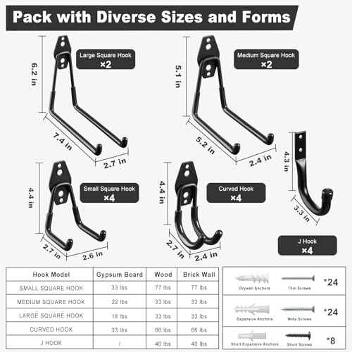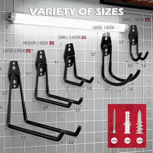 Garage Hooks, 20-Pack Steel Garage Accessories for Organization and Storage, Heavy Wall Mount Duty Hooks with Anti-Slip Coating for Hanging Ladder, Bike, Power Tools and More Tools, Black