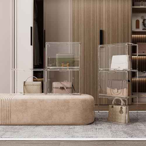 Purse Organizer for Closet, Purse Storage Organizer for Handbag Organizer, Clear Acrylic Display Case with Magnetic Door, Plastic Storage Bins for Book, Collectibles, Cosmetic (3 Pack)