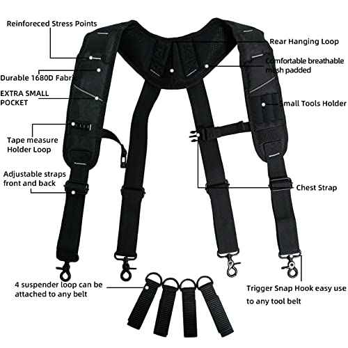 KUNN Tool Belt Suspenders Padded Carpenter Construction Electrician Work Suspender with Attachment Loops for Men,Black