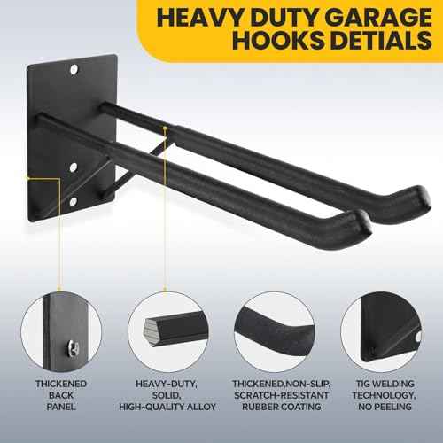 14" Large Heavy Duty Garage Hooks, 4-Pack Steel Garage Storage Hooks with Support Rods, Utility Wall Mount Hangers for Power Tools, Car Tires, Ladders, Chairs, Garden Tools and More