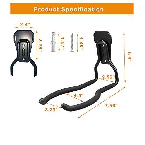 WMK 7.3'' Garage Hooks Heavy Duty Wall Hook, 6 Pack Garage Storage Hook, Wall Mount Utility Garage Hooks for Hanging Tools Bike Ladder (Orange)