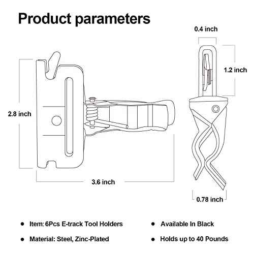6 Pack E-Track Tool Holders |E Track Accessories for Enclosed Trailer to Keep Rakes,Shovels, Broom|e Track Tool Holder Hanger for Trailer Accessories| Tool Stabilizer for Etrack Accessories