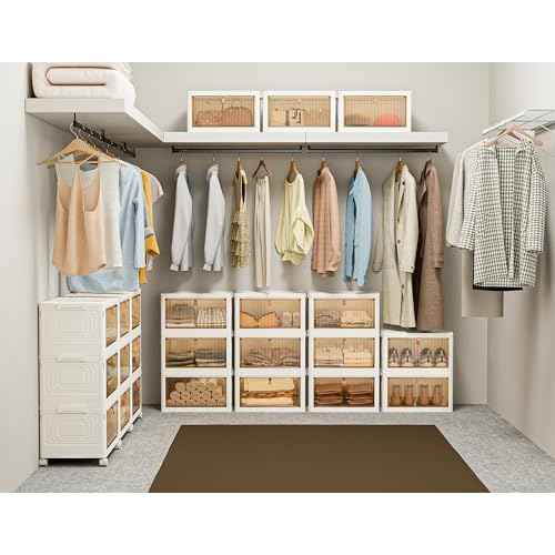Closet Organizers and Storage 93Qt 3 Pack Closet Organizer Boxes for Clothes Stackable Storage Bins Foldable Storage Box for Clothes/Office Supplies/Snacks(31Qt X 3)