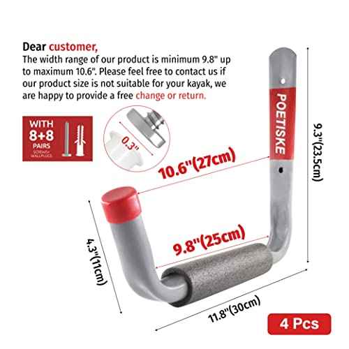 unp POETISKE Utility Hooks Ladder Hooks with 9.8'' Jumbo Arm Garage Storage Organizer Hang Folding Chair Bike Ski Tool Heavy Duty 4PC