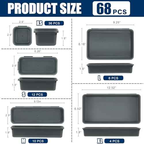 ¡¼LARGE SIZE¡½¡¼68PCS¡½Tool Box Organizer Tray Divider, ¡¼5 Size¡½Toolbox Desk Drawer Organizer, Organization and Storage Toolbox for Garage Accessories (68pcs-Grey) (68PCS 5Sizes)