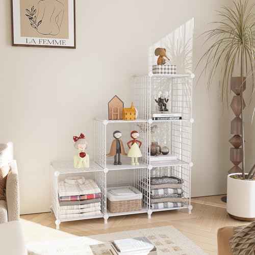 AWTATOS Wire Cube Storage Organizer, Closet Organizers and Storage, Metal 6 Cube Storage Shelves Bookshelf, Portable Closet Clothes Organizer for Bedroom, Home, Office, White