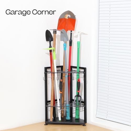 Garden Tool Organizer,Yard Tool Rack Heavy Duty,Free Standing for Garage Corner,Garage Organization,Garage Organizers and Storage,Garden Tool Holder for Lawn,Shed,Outdoor,Metal